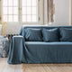 Navy blue linen couch cover designed and crafted to elevate your interior with a fresh look and great energy.