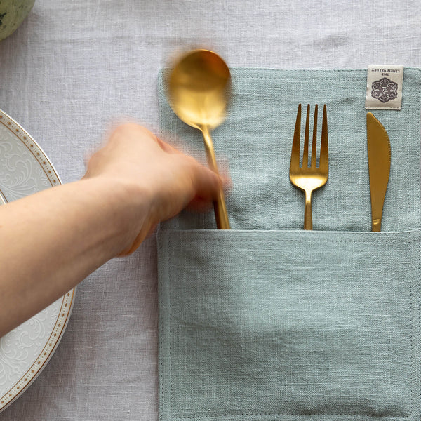 Duck egg blue linen cutlery holder will make your table setting look neat and tidy. Decorative cutlery pouch can be paired with table napkins or other table linens, mixed or matched.Duck egg blue linen cutlery holder will make your table setting look neat and tidy. Decorative cutlery pouch can be paired with table napkins or other table linens, mixed or matched.Duck egg blue linen cutlery holder will make your table setting look neat and tidy. Decorative cutlery pouch can be paired with table napkins or other table linens, mixed or matched.