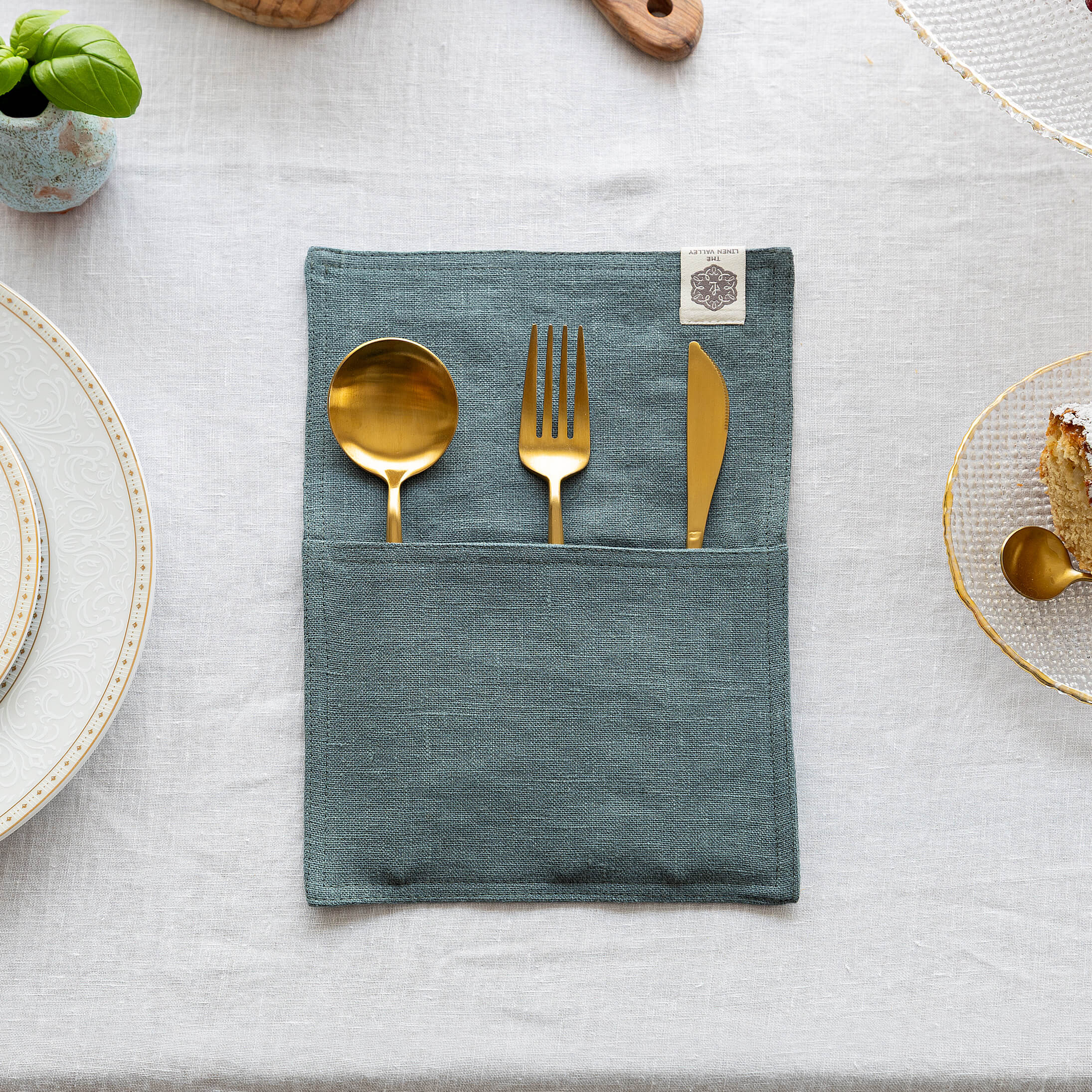 Decorative cutlery pouch can be paired with table napkins or other table linens, mixed or matched.