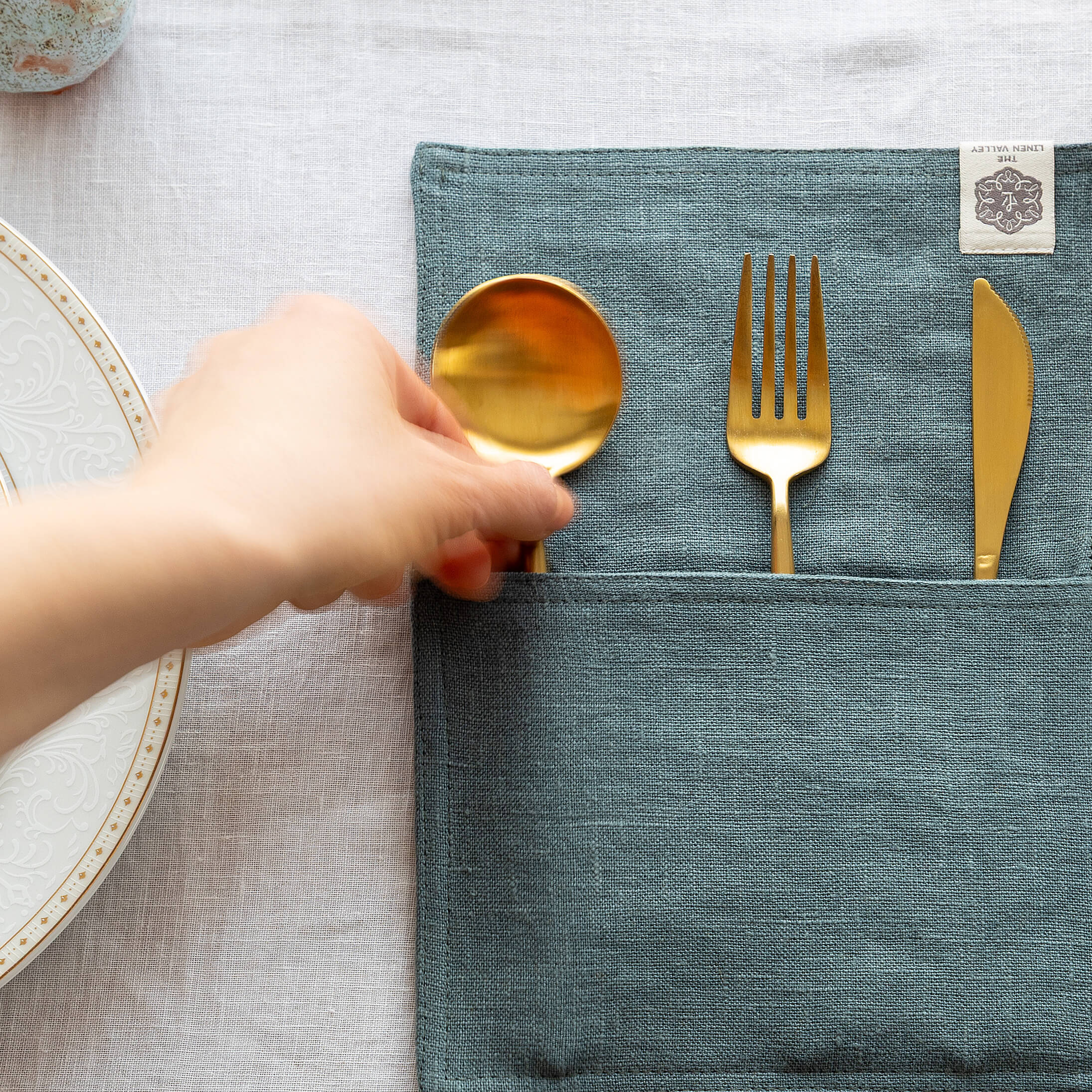 Rustic Unbleached linen cutlery holder will make your table setting look neat and tidy. Handmade from 100% softened heavier weight, double layered linen.