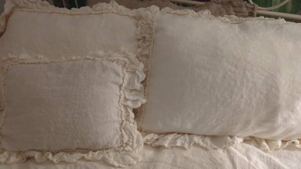 Gorgeous pillow cases, love all the frills and bottoms. Actually preferred then after washed and dried as they crinkled and just looked more rustic and fun. Material is superb quality. Once you sleep in linen you won't want to sleep under any other material, nothing like it! I had a custom size matching pillow case made for my snap pillow, got perfectly! Great seller, very responsive and communicative .. thank you