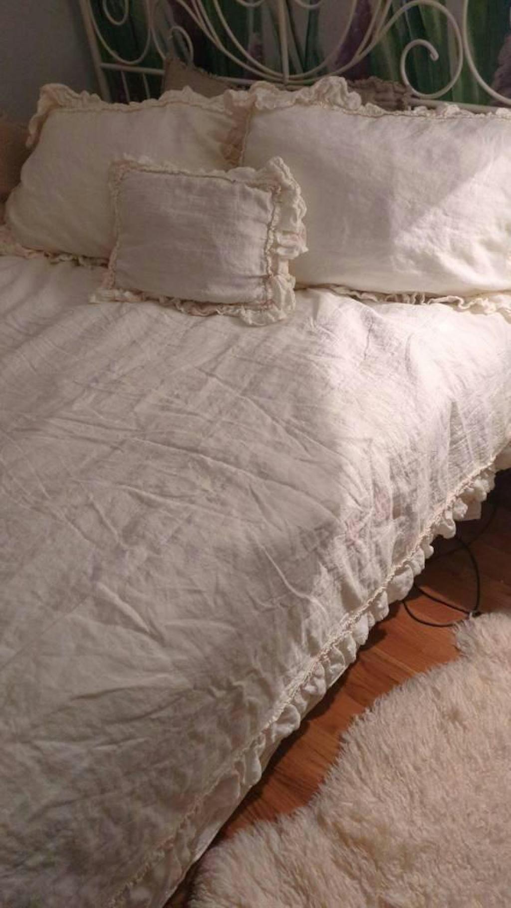 Fantastic seller, great customer service! Luxurious material, I'm obsessed! ... once you sleep in linen you will not want to sleep under any other material, you will feel the difference, nothing compares. I washed the sheets and pillow covers as soon as I got them and I actually prefer the look of the crinkled frills .. Thank you